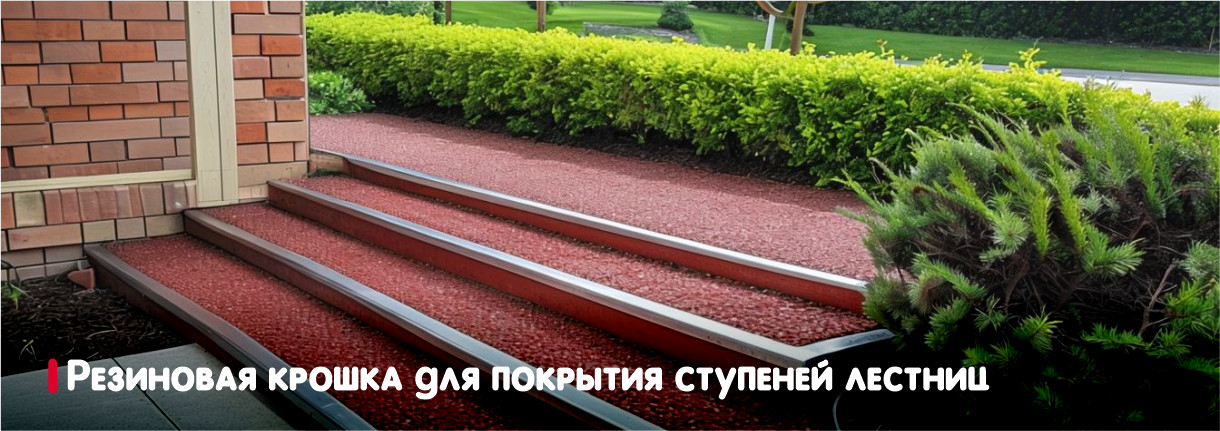 Создать безопасные и эстетичные ступени поможет резиновая крошка — инновационный материал, произведённый из переработанных автомобильных шин. Такое покрытие значительно повышает уровень комфорта и снижает травмоопасность при перемещении по лестнице. Оно подойдёт как для внутренних помещений, так и для наружных конструкций.